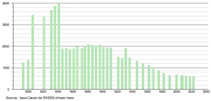 - ↑ Fiches Insee - Populations de référence de la commune pour les années 2006, 2007, 2008, 2009, 2010, 2011, 2012, 2013, 2014, 2015, 2016, 2017, 2018, 2019, 2020, 2021 et 2022.