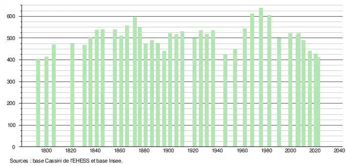 - ↑ Fiches Insee - Populations de référence de la commune pour les années 2006, 2007, 2008, 2009, 2010, 2011, 2012, 2013, 2014, 2015, 2016, 2017, 2018, 2019, 2020, 2021 et 2022.