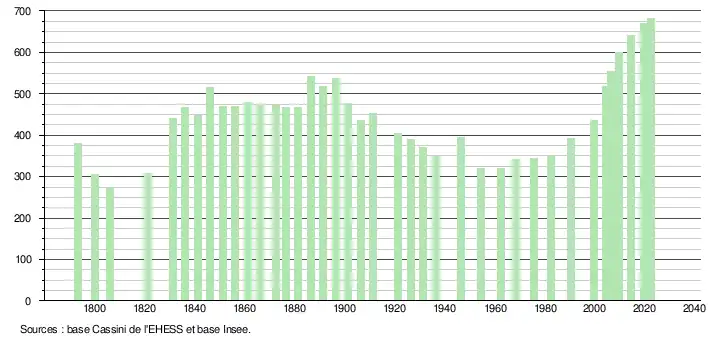 - ↑ Fiches Insee - Populations de référence de la commune pour les années 2006, 2007, 2008, 2009, 2010, 2011, 2012, 2013, 2014, 2015, 2016, 2017, 2018, 2019, 2020, 2021 et 2022.