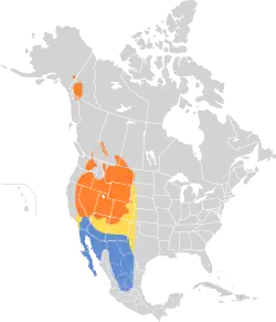 Cette espèce se cantonne à la partie ouest du continent nord-américain. Elle vit au Canada et aux États-Unis, du Yukon jusqu'au sud de la Californie, à l'Arizona et au Nouveau-Mexique. Elle est absente de la bande littorale jouxtant l'océan Pacifique[1].
