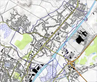 L'occupation des sols de la commune, telle qu'elle ressort de la base de données européenne d'occupation biophysique des sols Corine Land Cover (CLC), est marquée par l'importance des territoires artificialisés (72,4 % en 2018), en augmentation par rapport à 1990 (61,3 %). La répartition détaillée en 2018 est la suivante : zones urbanisées (65,6 %), forêts (15,3 %), prairies (10,8 %), zones industrielles ou commerciales et réseaux de communication (6,5 %), zones humides intérieures (1,2 %), mines, décharges et chantiers (0,2 %), zones agricoles hétérogènes (0,1 %), milieux à végétation arbustive et/ou herbacée (0,1 %)[20]. L'évolution de l'occupation des sols de la commune et de ses infrastructures peut être observée sur les différentes représentations cartographiques du territoire : la carte de Cassini (XVIIIe siècle), la carte d'état-major (1820-1866) et les cartes ou photos aériennes de l'IGN pour la période actuelle (1950 à aujourd'hui)[Carte 3].