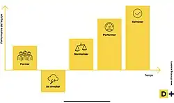 Selon son modèle appelé « Forming - storming - norming - performing - Adjourning » le processus se déroule comme suit :