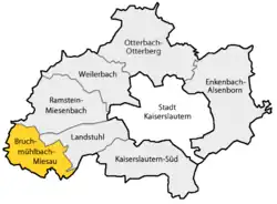 La Verbandsgemeinde de Bruchmühlbach-Miesau consiste en cette liste d'Ortsgemeinden (municipalités locales):