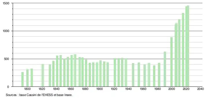 - ↑ Fiches Insee - Populations de référence de la commune pour les années 2006, 2007, 2008, 2009, 2010, 2011, 2012, 2013, 2014, 2015, 2016, 2017, 2018, 2019, 2020, 2021 et 2022.