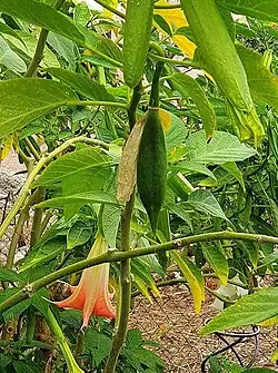 Les fruits de Brugmansia sont des baies qui peuvent être ovoïdes et de 5,5 à 7 cm de long, obovales ou oblongues en forme d'œuf et de 6,5 à 11 cm de long ou fusiformes et de 14 à 35 cm de long. Ces baies n'ont aucun mécanisme d'ouverture et, selon les espèces, contiennent moins de 100 ou plus de 300 graines. D'une longueur de 8 à 12 mm, les graines sont relativement grandes, cunéiformes, presque réniformes ou de forme irrégulière. La surface des graines est finement noire ou lisse, généralement épaisse, parfois semblable à du liège.