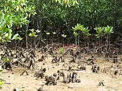 1. Pole-Relais Zones Humides Tropicales, « La restauration de mangrove », Figure 11 : profil d'une mangrove en Asie du Sud-Est page 15 (Guide technique de 32 pages), sur uicn.fr,