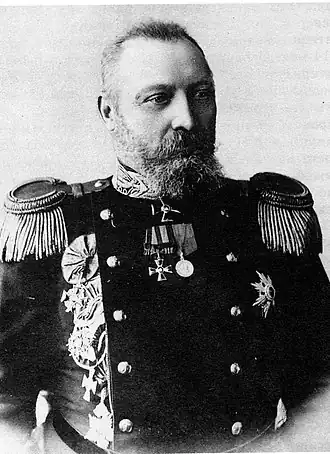 Il commande alors l'expédition du cuirassé d'escadron Le Navarin qui allait prendre part à la terrible bataille de Tsushima, sous les ordres du contre-amiral Dimitri von Fölkersahm, pendant la guerre russo-japonaise. Le baron y mourut après dix-sept heures de souffrances et sombra avec le navire, où seuls trois hommes survécurent.