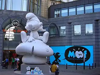 Devant cette galerie, se dresse une statue d'un Schtroumpf blanc de cinq mètres de haut et pesant près de neuf tonnes.