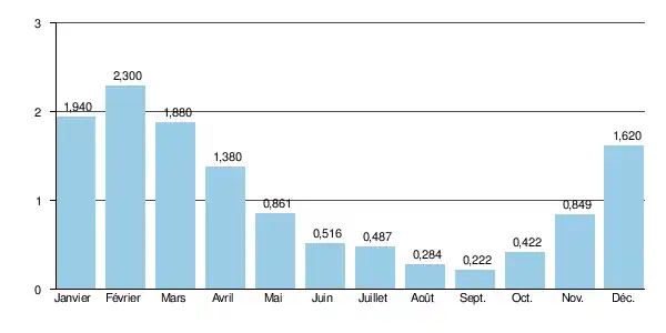 Le module de la rivière à Brusson est de 1,06 m3/s.