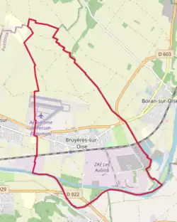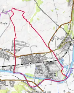 - ↑ « Communes limitrophes de Bruyères-sur-Oise » sur Géoportail..