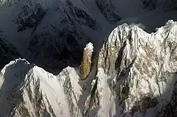 Le Bubuli Motin au centre (versant sud-est) et le pic Hunza sur la droite | ||