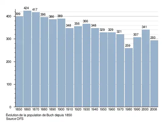 Le graphique suivant résume l'évolution de la population de Buch entre 1850 et 2008[3] :