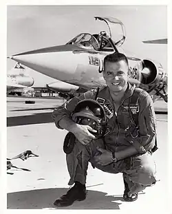 Bud Anderson apprend à voler à l'âge de dix-neuf ans. Pilote de chasse pendant la Seconde Guerre mondiale (il est officiellement crédité de 16,25 victoires aériennes), il devient ensuite pilote d'essai, affecté à la base aérienne Wright-Patterson puis à la base aérienne Edwards[2]. Il évolue par la suite vers des postes de commandement, d'abord au Pentagone, ensuite en escadron, enfin en escadre. De juin à décembre 1970, il est le dernier commandant de la 355e escadre de chasse lorsque celle-ci participe à la guerre du Viêt Nam depuis la base de Takhli (en), en Thaïlande. Il prend sa retraite en , avec le grade de colonel et après 30 ans de service.