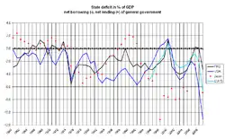 - ↑ [PDF] Japon : assainissement des finances publiques : plus de la moitié du chemin reste à faire, groupe Société générale, mars 2008.