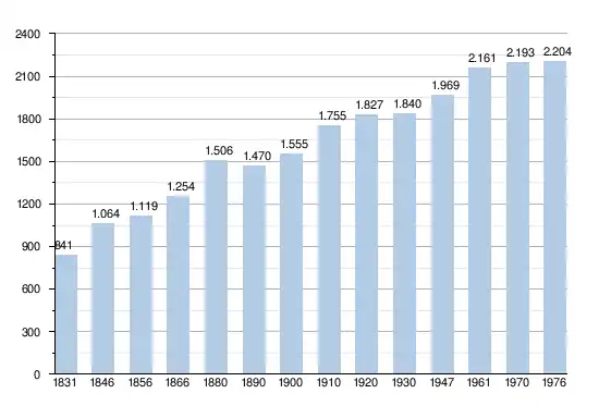 - Sources : INS, Rem. : 1831 jusqu'en 1970 = recensements, 1976 = nombre d'habitants au 31 décembre.