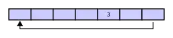 Si deux éléments sont alors retirés du buffer il s’agira des deux premiers éléments ajoutés. Ici, il s’agit de 1 et 2, le buffer ne contient alors plus que le 3 :