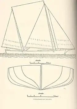 Les log canoe ne présentaient aucun de ces inconvénients, mais étaient trop petits pour transporter avec succès des dragues. Le résultat fut le développement au cours des années 1870 et 1880 d'un canot plus grand. La coque ouverte du canot était pontée, avec des écoutilles couvrant les cales créées en subdivisant la coque avec des cloisons. Ce bateau utilisait généralement le même plan de voile que le log canoe de la région de l'île Tilghman (une misaine, une grand-voile et un foc triangulaire), avec le mât de misaine plus haut que le mât de grand-voile. Les deux mâts étaient inclinés plutôt fortement vers l'arrière, le grand mât étant nettement plus incliné que le mât de misaine.