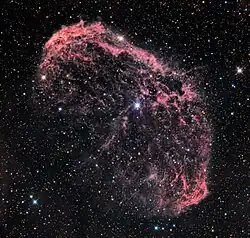 La Nébuleuse du Croissant est une bulle de vent stellaire formée par les vents stellaires occasionnés par l'étoile Wolf-Rayet WR 136 (en)