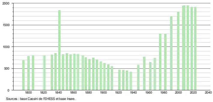 En 2022, la commune comptait 1 915 habitants[Note 3], en évolution de −0,36 % par rapport à 2016 (Yvelines : +2,72 %, France hors Mayotte : +2,11 %).