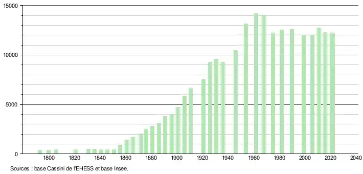12 172 hab. (2022 en évolution de −1,03 % par rapport à 2016)