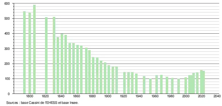 - ↑ Population municipale de référence en vigueur au 1er janvier 2025, millésimée 2022, définie dans les limites territoriales en vigueur au 1er janvier 2024, date de référence statistique : 1er janvier 2022.