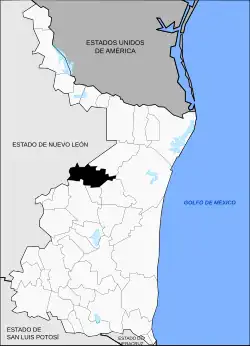 Elle est limitrophe au nord de la municipalité de Méndez, à l'ouest, dans l'État de Nuevo León, de celles de China, de General Terán et de Linares, au sud, à nouveau dans l'État de Tamaulipas, de celles de San Carlos, de San Nicolás et de Cruillas, et à l'est de celle de San Fernando[1].