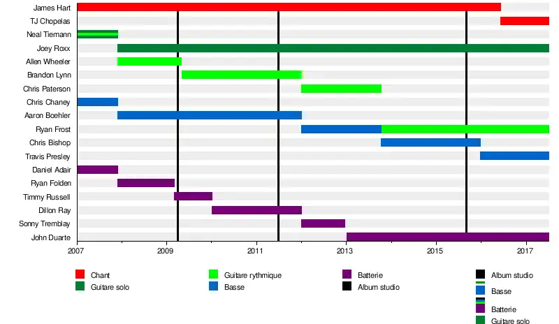 - Ryan Frost – guitare rythmique, chœurs (depuis 2013), basse (2012-2013)