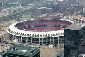 Le stade a été conçu par l'architecte Edward Durell Stone et construit par Grün & Bilfinger[1]. La conception du toit de 96 arcs ("The Crown of Arches") a répercuté l'iconique Jefferson National Expansion Memorial, qui a été achevé seulement un an avant.