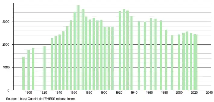 - ↑ Population municipale de référence en vigueur au 1er janvier 2025, millésimée 2022, définie dans les limites territoriales en vigueur au 1er janvier 2024, date de référence statistique : 1er janvier 2022.