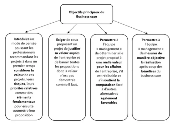 Lors de la mise en place d'un projet, ce dernier doit être approuvé notamment s'il représente un investissement important. Le business case met en avant l'objectif du projet. Pour ce faire, il énumère les raisons pour lesquelles le projet a été initié, les bénéfices attendus, les options à considérer (avec les facteurs de rejet ou d'approbation expliquant la prise en compte ou pas de chaque option), les coûts prévisibles, l'analyse des carences et les risques supportés. Le business case va chercher à présenter la valeur ajoutée du projet et donc de l’investissement de départ (à ne pas confondre avec Business Plan).