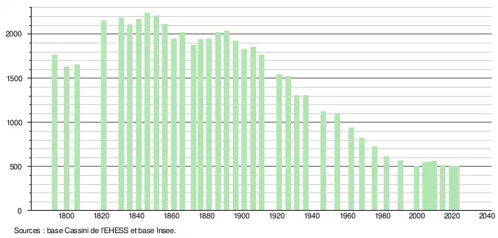 - ↑ Fiches Insee - Populations de référence de la commune pour les années 2006, 2007, 2008, 2009, 2010, 2011, 2012, 2013, 2014, 2015, 2016, 2017, 2018, 2019, 2020, 2021 et 2022.