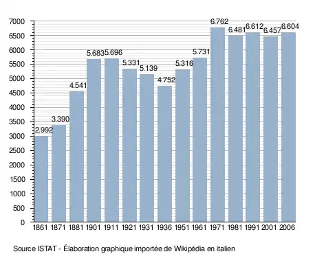 - ↑ (it) Popolazione residente e bilancio demografico sur le site de l'ISTAT.