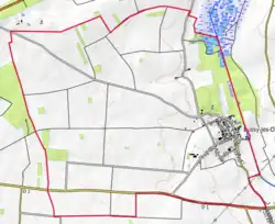 L'occupation des sols de la commune, telle qu'elle ressort de la base de données européenne d'occupation biophysique des sols Corine Land Cover (CLC), est marquée par l'importance des territoires agricoles (87,8 % en 2018), une proportion identique à celle de 1990 (87,8 %). La répartition détaillée en 2018 est la suivante : terres arables (87,2 %), forêts (5,5 %), zones urbanisées (4 %), espaces verts artificialisés, non agricoles (1,6 %), zones humides intérieures (1,1 %), zones agricoles hétérogènes (0,6 %)[15]. L'évolution de l'occupation des sols de la commune et de ses infrastructures peut être observée sur les différentes représentations cartographiques du territoire : la carte de Cassini (XVIIIe siècle), la carte d'état-major (1820-1866) et les cartes ou photos aériennes de l'IGN pour la période actuelle (1950 à aujourd'hui)[Carte 3].