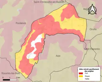 Le retrait-gonflement des sols argileux est susceptible d'engendrer des dommages importants aux bâtiments en cas d’alternance de périodes de sécheresse et de pluie. 93,9 % de la superficie communale est en aléa moyen ou fort (84,7 % au niveau départemental et 48,5 % au niveau national). Sur les 160 bâtiments dénombrés sur la commune en 2019, 157 sont en aléa moyen ou fort, soit 98 %, à comparer aux 86 % au niveau départemental et 54 % au niveau national. Une cartographie de l'exposition du territoire national au retrait gonflement des sols argileux est disponible sur le site du BRGM[22],[23].