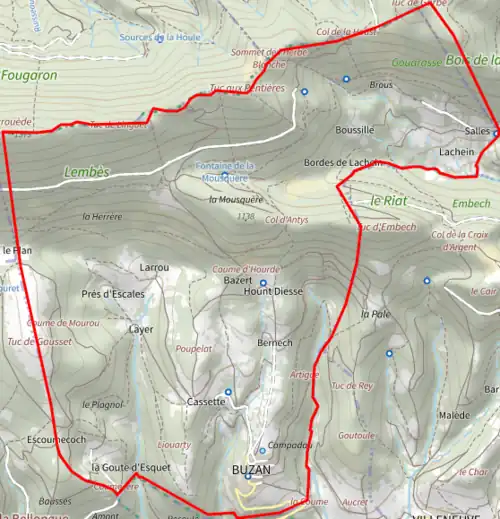 - ↑ Stephan Georg, « Distance entre Buzan et Saint-Girons », sur fr.distance.to (consulté le ).