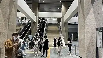 La station est accessible, au niveau du sol, par des escaliers et des escaliers mécaniques et un ascenseur pour les personnes en situation de handicap. C'est au premier niveau que l'on trouve les bornes pour l'achat de titres de transports et les Portillon d'accès pour la validation des billets. Au deuxième niveau on accède deux quais latéraux par les mêmes moyens que pour l'accès au premier niveau[3].