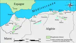 | Kabylie | 36°30 | 1400 - 2200 | 1200 - 1700 | 16,8 °C | −8,5 °C |