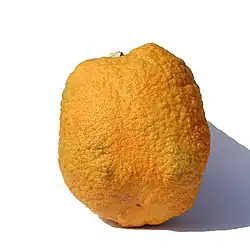 Cédrat aurantiata. Gallesio décrit (NoVI) un C. x medica cedra aurantiata à fruit doux[88]. Probablement en rapport avec le cedro della Cina (cédrat de Chine) italien (qui pourrait aussi être le cédratier à fruits rugueux) qui est décrit comme spécialement rustique (−8 à −10 °C)[89] et qui appartenait à la collection des Medicis: C. medica aurantiata ou encore cedro aranciato pomo d’Adamo[90]. Le fruit de taille moyenne, avec une pulpe juteuse abondante[91], est très décoratif avec une peau finement et profondément granuleuse. Comme chez celui de Gallesio l'albedo a une saveur douce (le flavedo - zeste - est amer). On en fait des confitures, des fruits confits ou on le mange cru, frais et en salade[92]. Sa chromatogramme a été publié (γ-terpinene 12 %, limonéne 11 %, mircène 8 %)[93].
