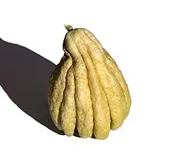 Le cédrat dans sa forme non digitée est un gros fruit ovale lisse ou bosselé, parfois verruqueux, décoratif, et dans sa forme digitée il se divise en forme de doigts, d'où le nom usuel de main de Bouddha. Quand elle existe (les digités n'en n'ont jamais), la pulpe peut être douce ou acide, verte à jaune, souvent peu juteuse. Le parfum de son zeste est très agréable.