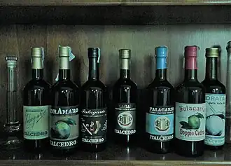 • Liqueurs italiennes : Il cedro, Acqua di cedro (infusion de cédrat 29°)[57], Liquore al cedro de la Riviera dei Cedri (un limoncello de cédrat)[58], liqueur Salò (qui donne l'acqua di cedro - la Cedrinca et la Cedral Tassoni -[59]