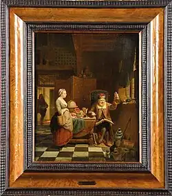 - Salon de Bruxelles de 1845 : L'Artiste contant fleurette est surpris par le père et La Bonne recette[10].