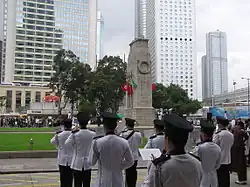 Durant la gouvernance britannique (en), après 1945, la commémoration du jour de la libération a lieu devant le Cénotaphe le dernier lundi d'août pour fêter la libération de Hong Kong de l'occupation japonaise en 1945. Aucune cérémonie officielle n'y a plus eu lieu depuis 1997. Des délégations non officielles y organisent cependant des événements, et les mâts des drapeaux sont parfois habillés.