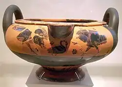 On[Qui ?] peut présumer qu'il est à l'origine de l'essor de l'amphore de type A, il est probablement aussi l'inventeur du cratère en calice (le premier qui nous soit parvenu est de sa main).