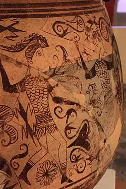 À partir du dernier quart du IIIe siècle av. J.-C. et au cours du IIe siècle av. J.-C., les décors des céramiques peintes ibériques de l'est de la péninsule ibérique ont connu un saut qualitatif dont le plus grand représentant a été l'enrichissement des répertoires décoratifs avec des motifs végétaux et floraux, épigraphiques, animaux et humains, bien que la grande majorité des productions ait continué à présenter des décors strictement géométriques. Les différences régionales dans les styles picturaux et les contenus thématiques ont été décrites en détail par Miquel Tarradell[34]. D'un point de vue anthropologique, les nouveaux décors suggèrent l'existence d'artisans spécialisés hautement qualifiés, comme l'écrivent certains d'entre eux, et témoignent de la production de biens de prestige encouragée par les plus hautes sphères des sociétés urbaines. Et bien qu'il y ait des styles et des chronologies différents, le dénominateur commun de tous ces objets est qu'ils reflètent les valeurs universellement associées aux aristocraties[35]. D'autre part, il est indéniable que les différentes productions sont plus ou moins apparentées et qu'elles reflètent donc l'intensité des contacts intertribaux malgré leur éloignement géographique souvent considérable. Une production céramique caractéristique du monde ibérique tardif est le kalathos, qui a la forme d'un chapeau haut de forme[36],[37],[38].