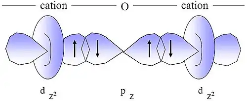 Dans le cas de la magnétite Fe3O4, la structure est de type spinelle inverse Fe3+(Fe2+Fe3+)O4. Le moment magnétique du fer ferrique Fe3+ vaut 5µB, tandis que celui du fer ferreux Fe2+ vaut 4µB. En raison du superéchange, le moment magnétique total vaut (5 + 4 – 5) µB = 4 µB, car les moments magnétiques des deux types de cations sont opposés.
