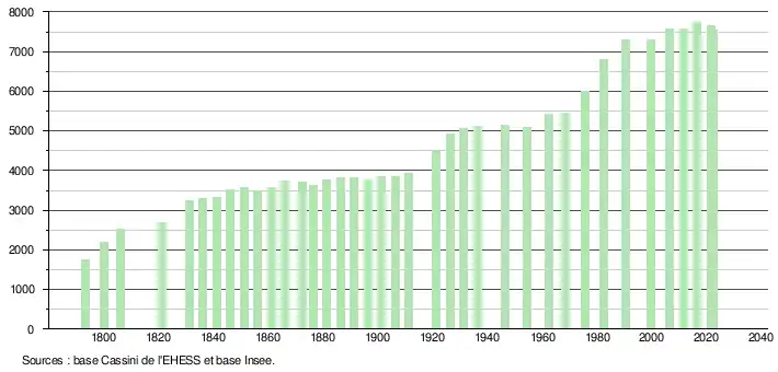 - ↑ Fiches Insee - Populations de référence de la commune pour les années 2006, 2007, 2008, 2009, 2010, 2011, 2012, 2013, 2014, 2015, 2016, 2017, 2018, 2019, 2020, 2021 et 2022.