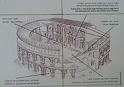 Le théâtre bâti à l'époque d'Hérode pouvait contenir 4 000 spectateurs. Le cirque bâti aussi à l'époque d'Hérode possède un obélisque sur la spina. Il mesurait 250 m de long et 50 m de large. Il avait douze rangées de sièges et pouvait contenir 10 000 personnes.