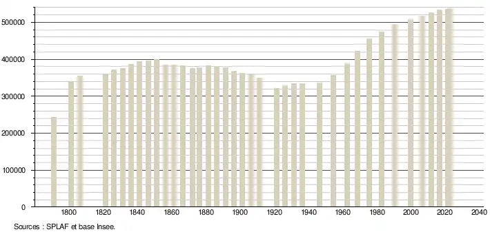 - ↑ Population municipale de référence en vigueur au 1er janvier 2025, millésimée 2022, définie dans les limites territoriales en vigueur au 1er janvier 2024, date de référence statistique : 1er janvier 2022.