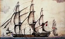 Ce n'est qu'une décennie après les Suédois, que les Danois furent introduits par Henry Caerlof, un ancien salarié des Néerlandais, puis des Suèdois, et enfin du Danemark-Norvège. En 1650, le roi local avait en effet noué des liens d'amitié avec ce navigateur et marchand néerlandais d'origine polonaise[2]. Le commerce avec les Européens lui permit par la suite d'acquérir, en échange d'or puis d'esclaves, des mousquets et de la poudre[3].
