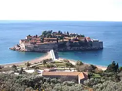 La riviera monténégrine s'étend entre les villes de Budva et de Bar. La partie côtière est séparée de l'arrière-pays par le massif du Lovčen, le Paštrovci et le Rumija. Quelques petites îles et récifs se détachent sur la Riviera. La ville maritime de Sveti Stefan, désormais reliée au continent par une chaussée, est particulièrement connue.